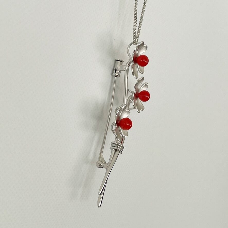 ペンダントブローチ フラワー 赤珊瑚 SV