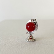 美しい血赤珊瑚を使用した、立体感のある地球儀のデザインのピンタックブローチです。