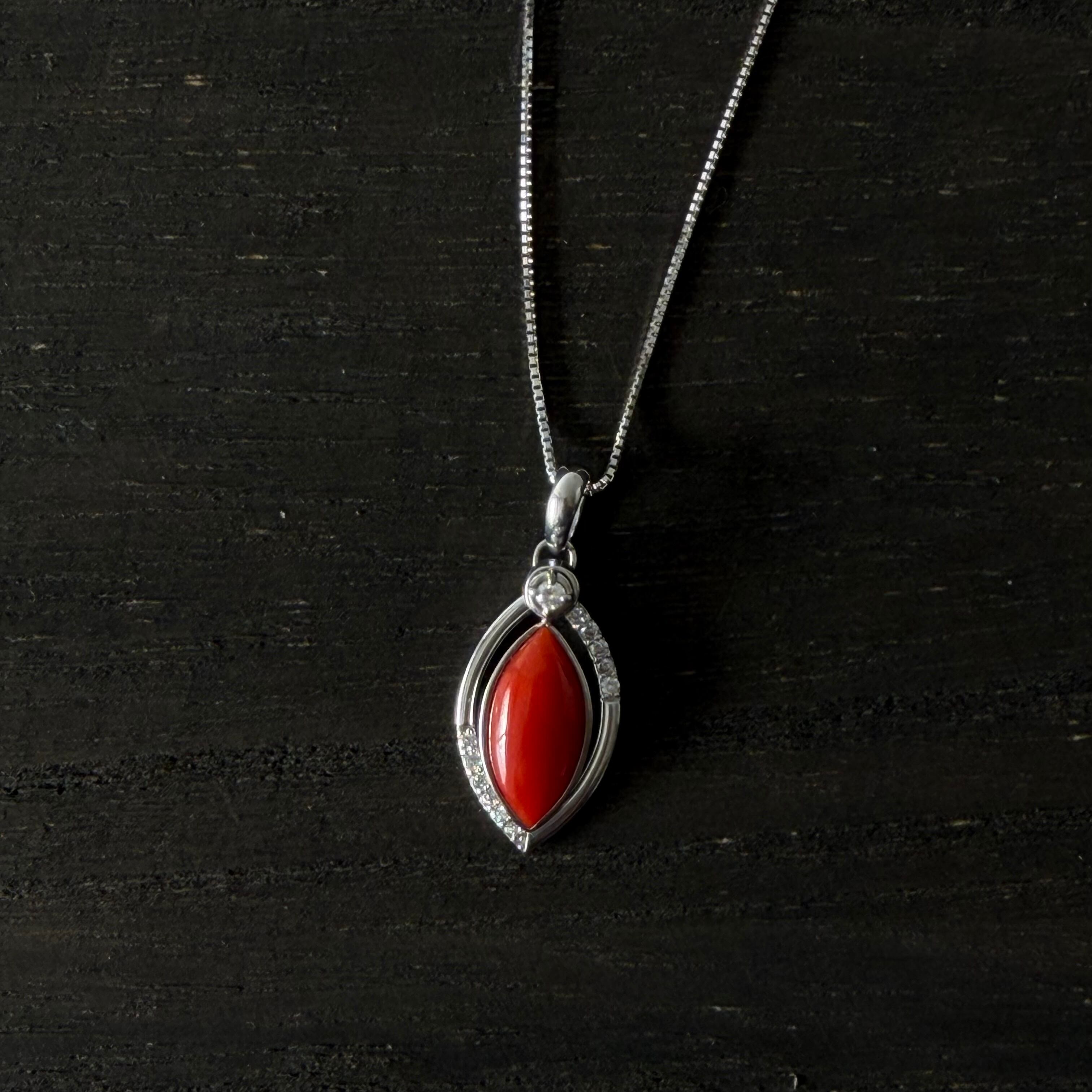 血赤珊瑚が動くたびに揺らめくペンダント。
