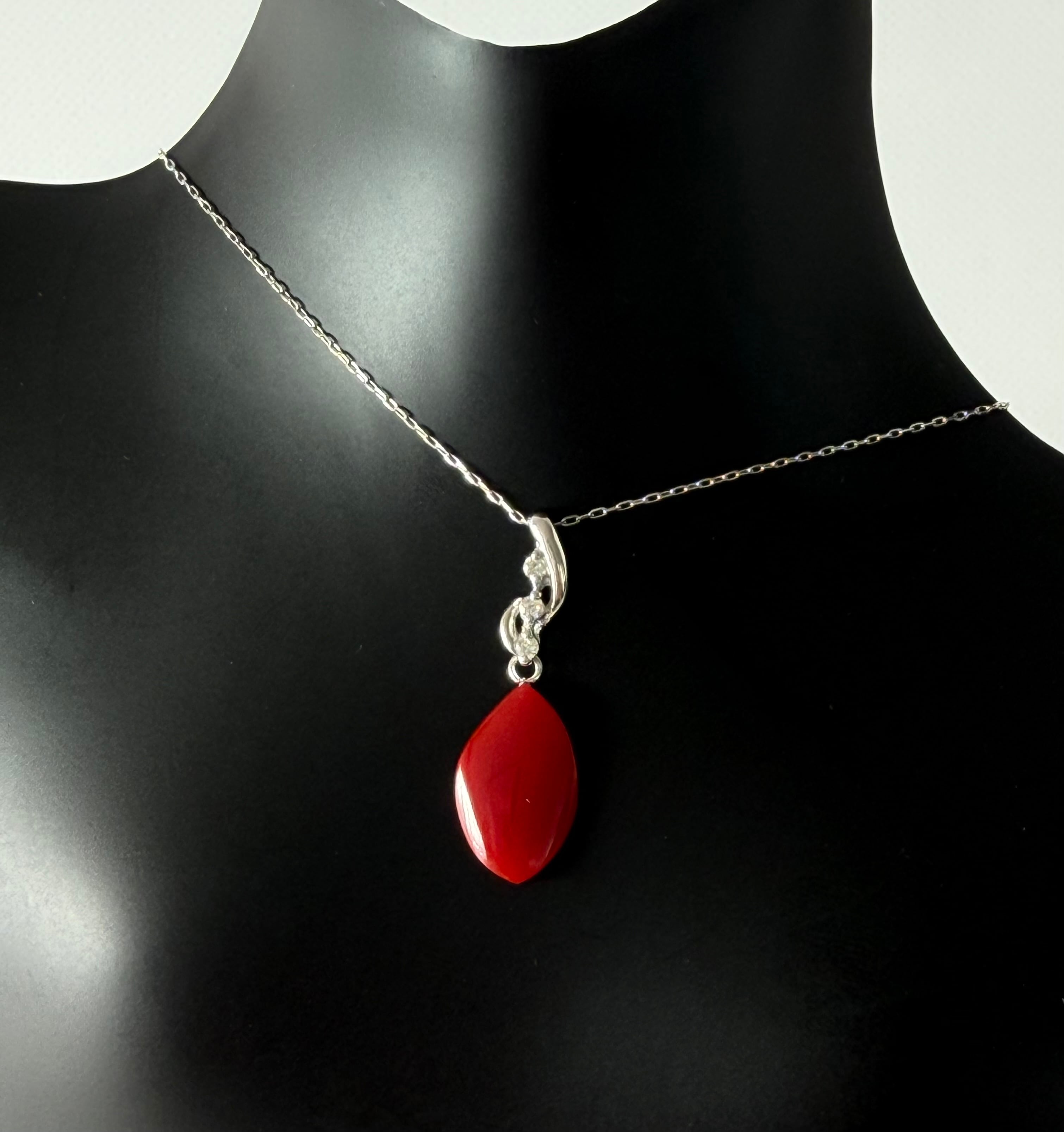 血赤珊瑚 ペンダント K18WG 0.04ct