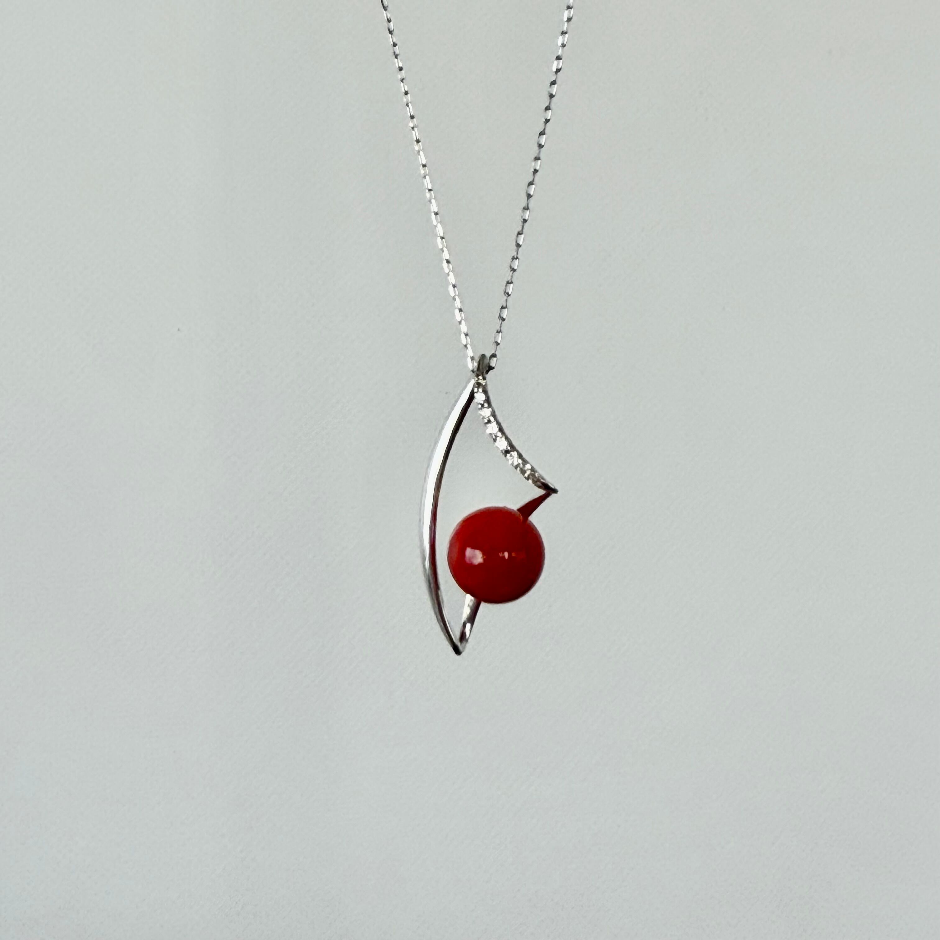 K18WG 赤珊瑚ペンダント D0.05 pd-43