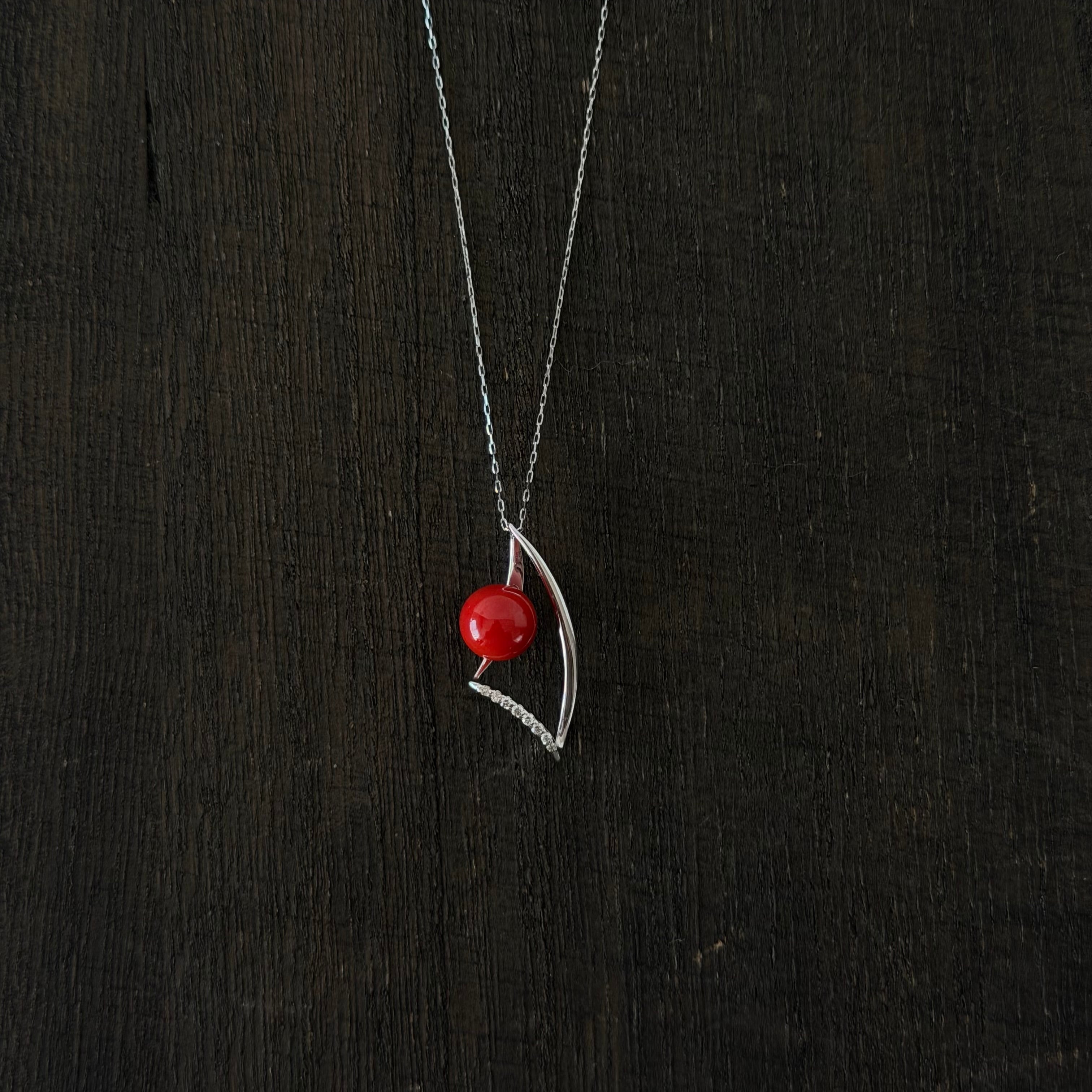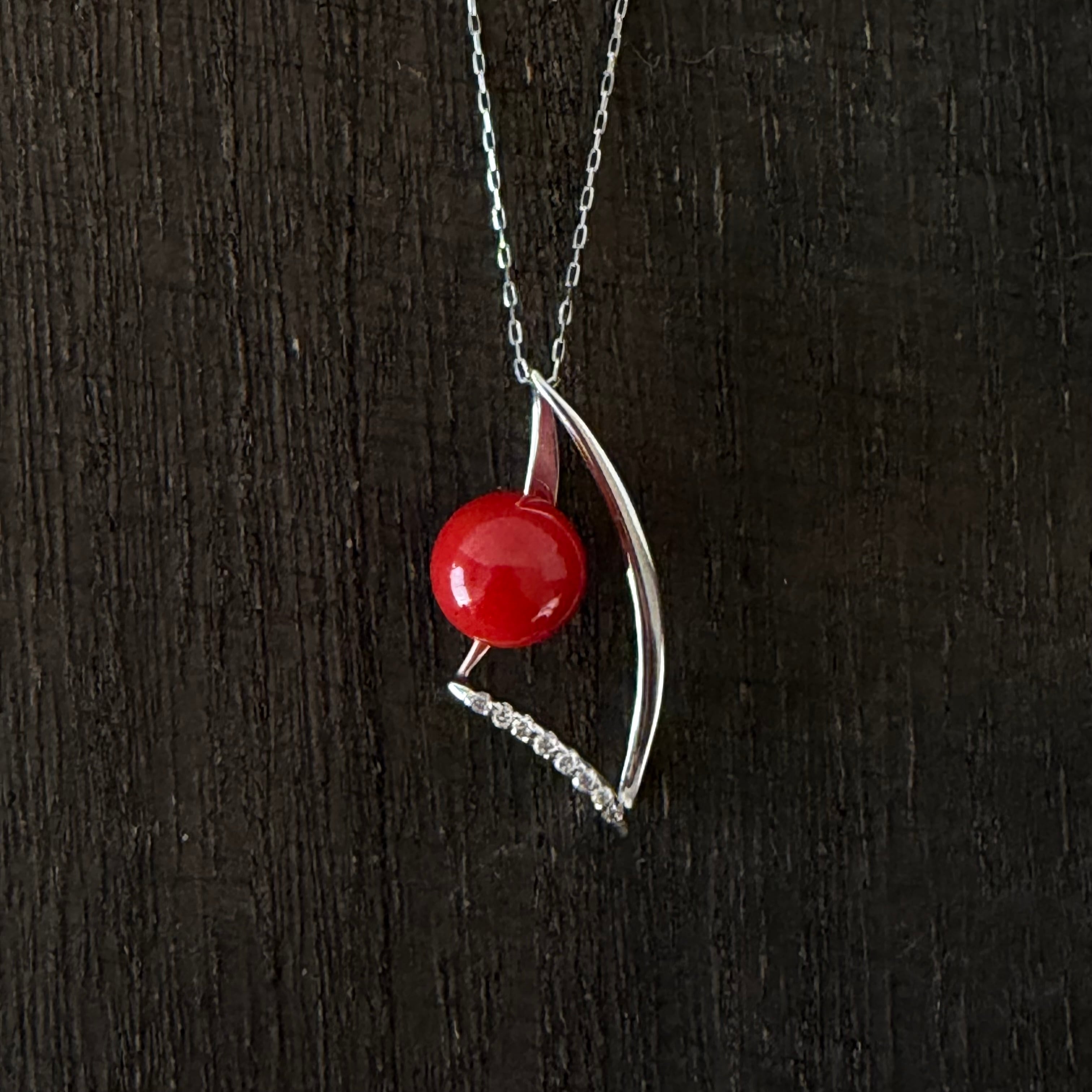 赤珊瑚と動きのあるモチーフにダイヤモンドをセッティングした