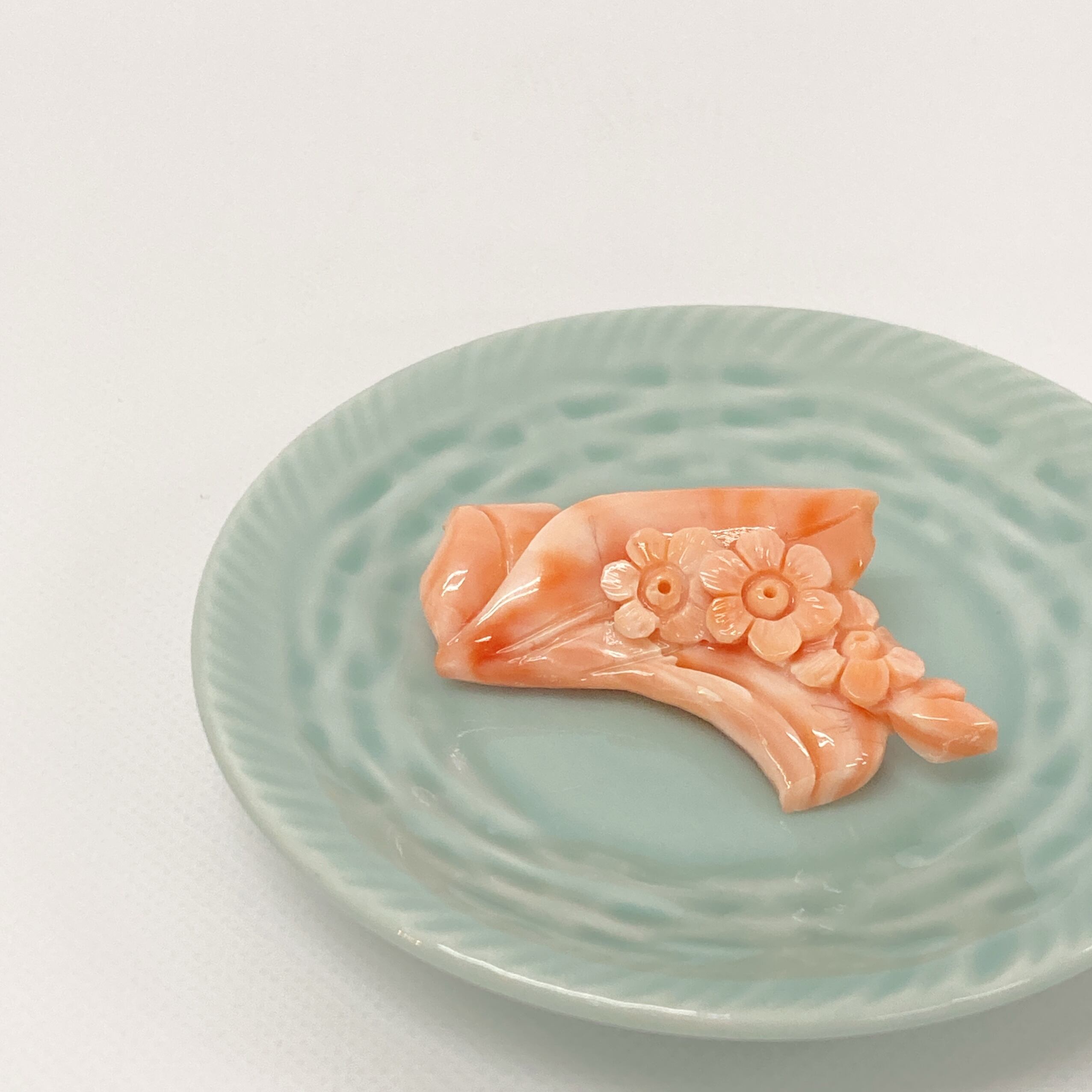 熟練した珊瑚職人が、一つひとつ丁寧に彫り上げた1点物のブローチです。