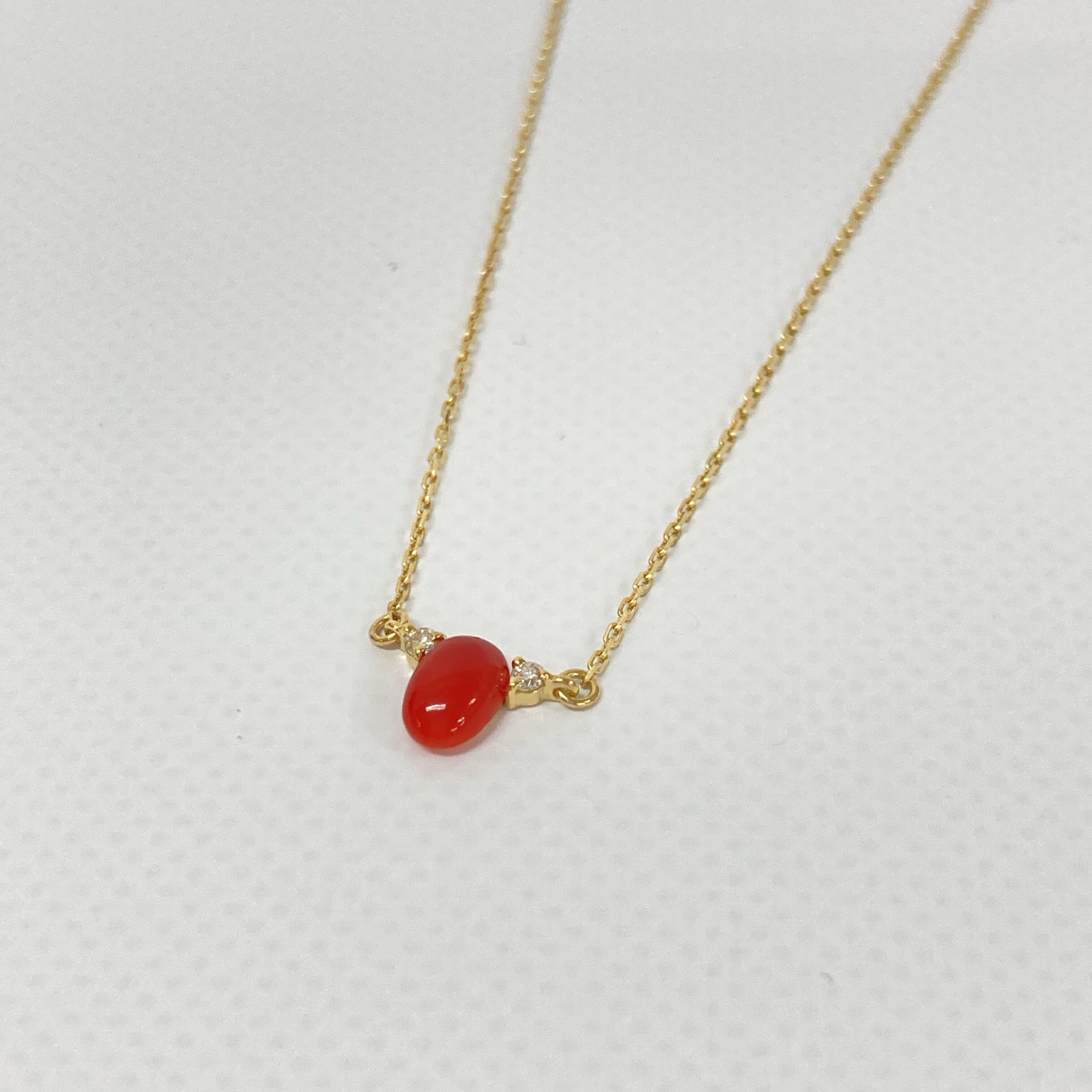 良質で繊細なK18のチェーンに、深い赤色が特徴的で美しい宝石珊瑚。