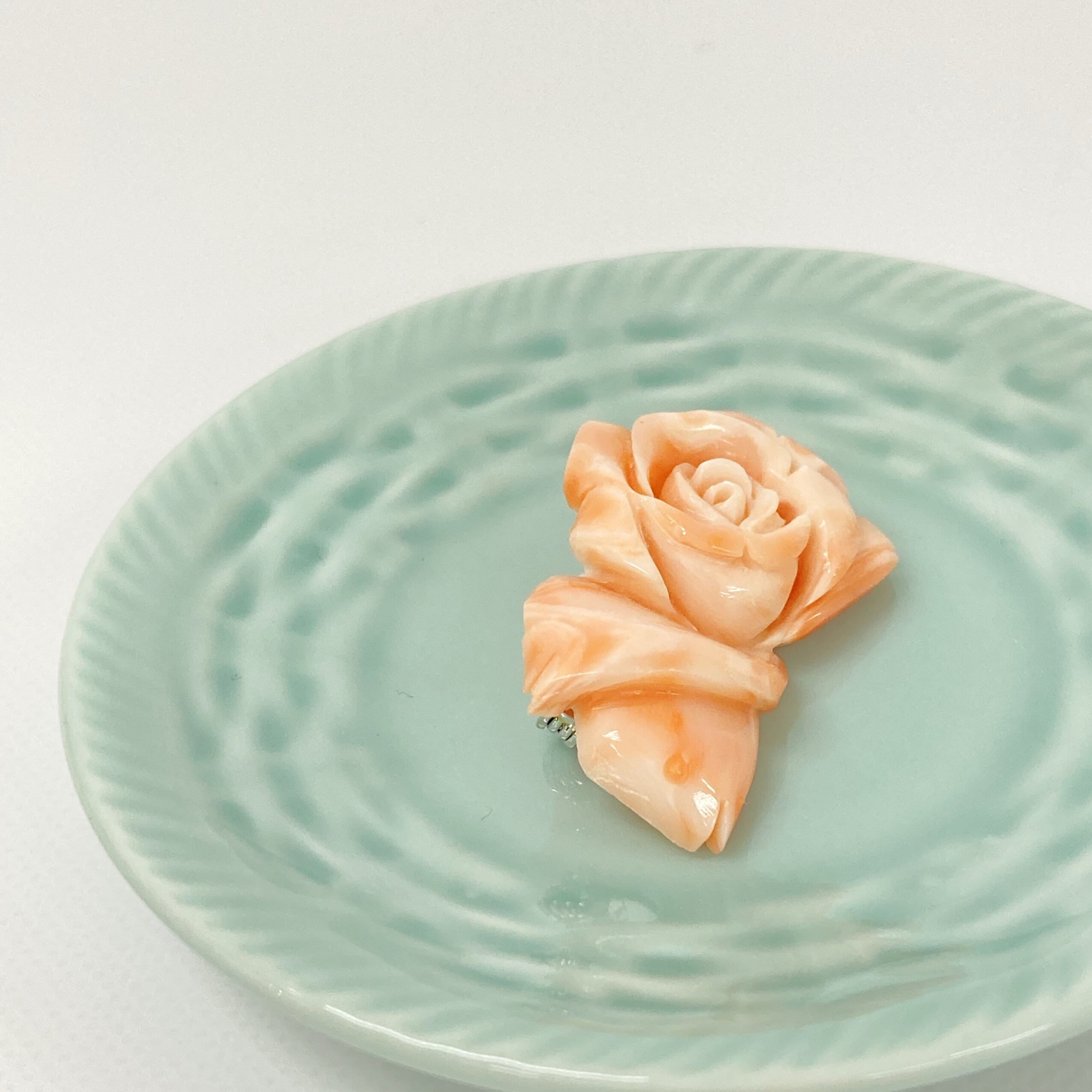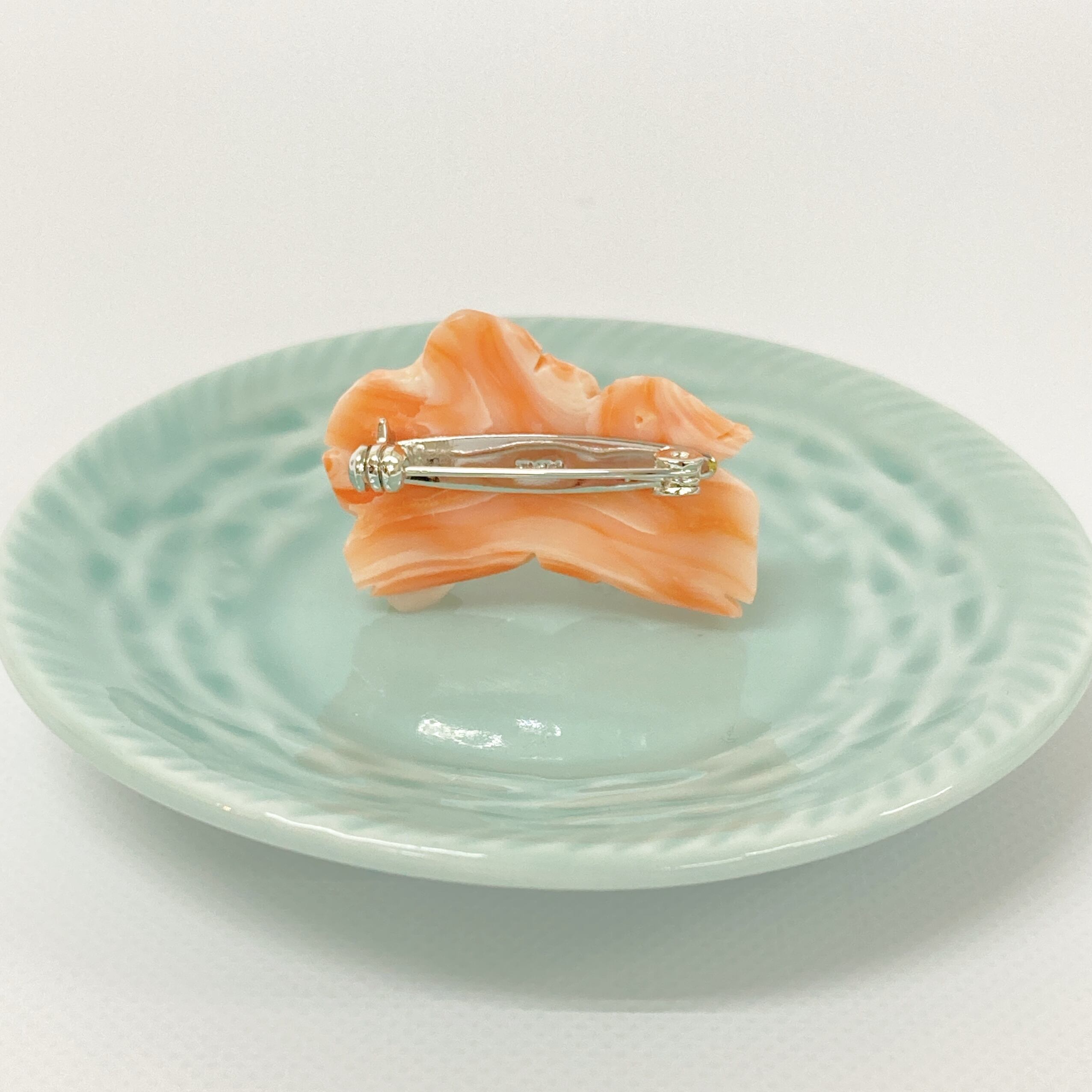 熟練した珊瑚職人が、一つひとつ丁寧に彫り上げた1点物のブローチです。