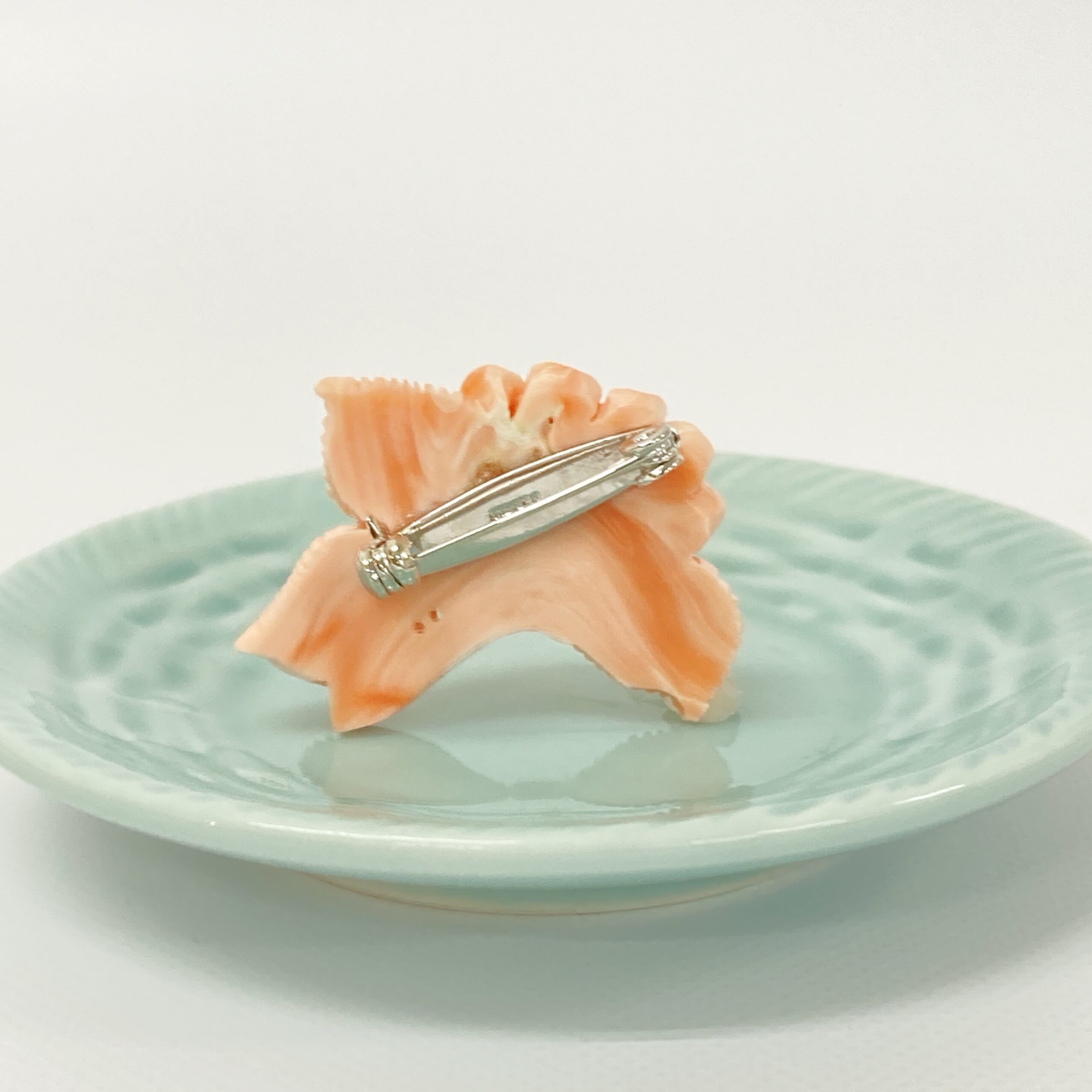 熟練した珊瑚職人が、一つひとつ丁寧に彫り上げた1点物のブローチです。