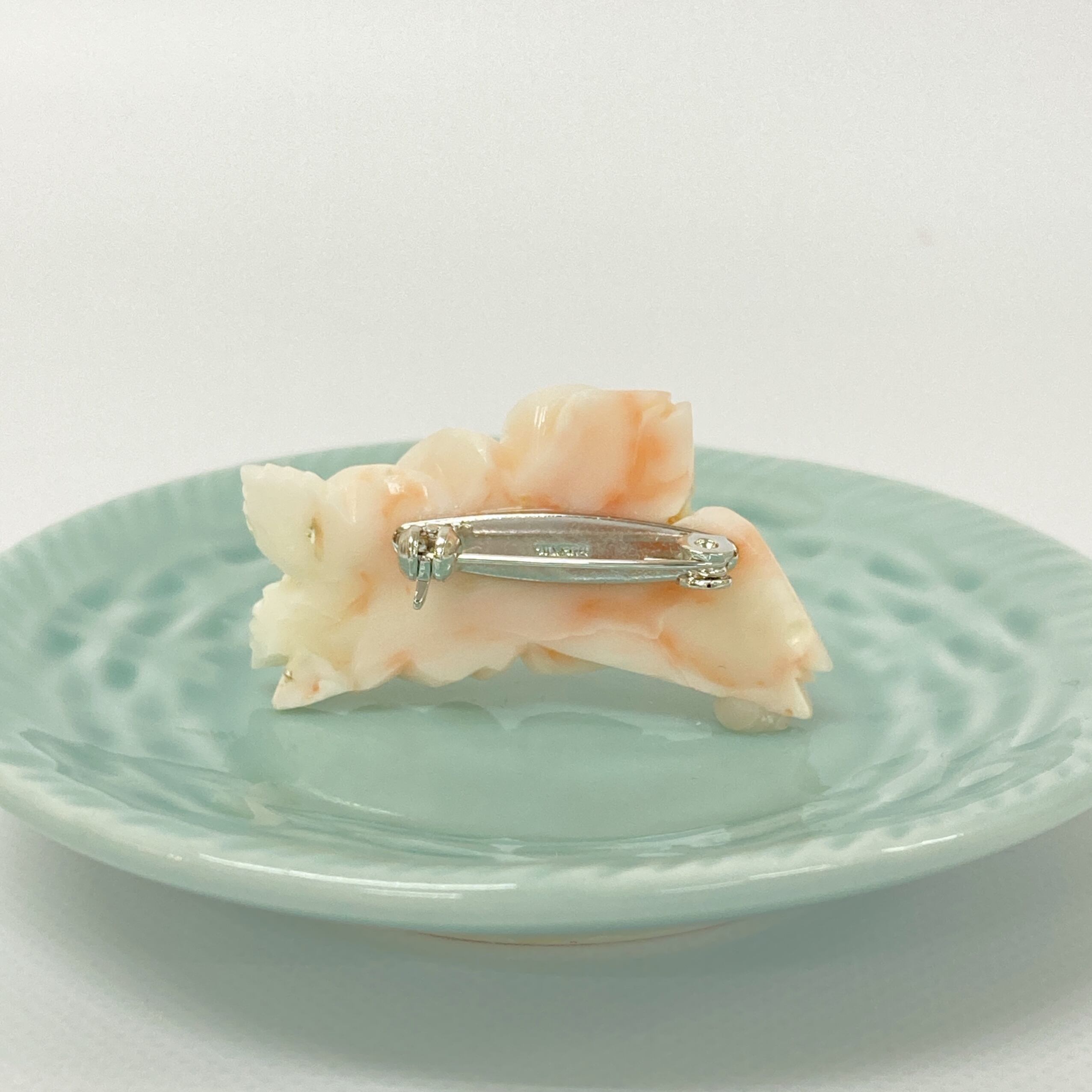 熟練した珊瑚職人が、一つひとつ丁寧に彫り上げた1点物のブローチです。