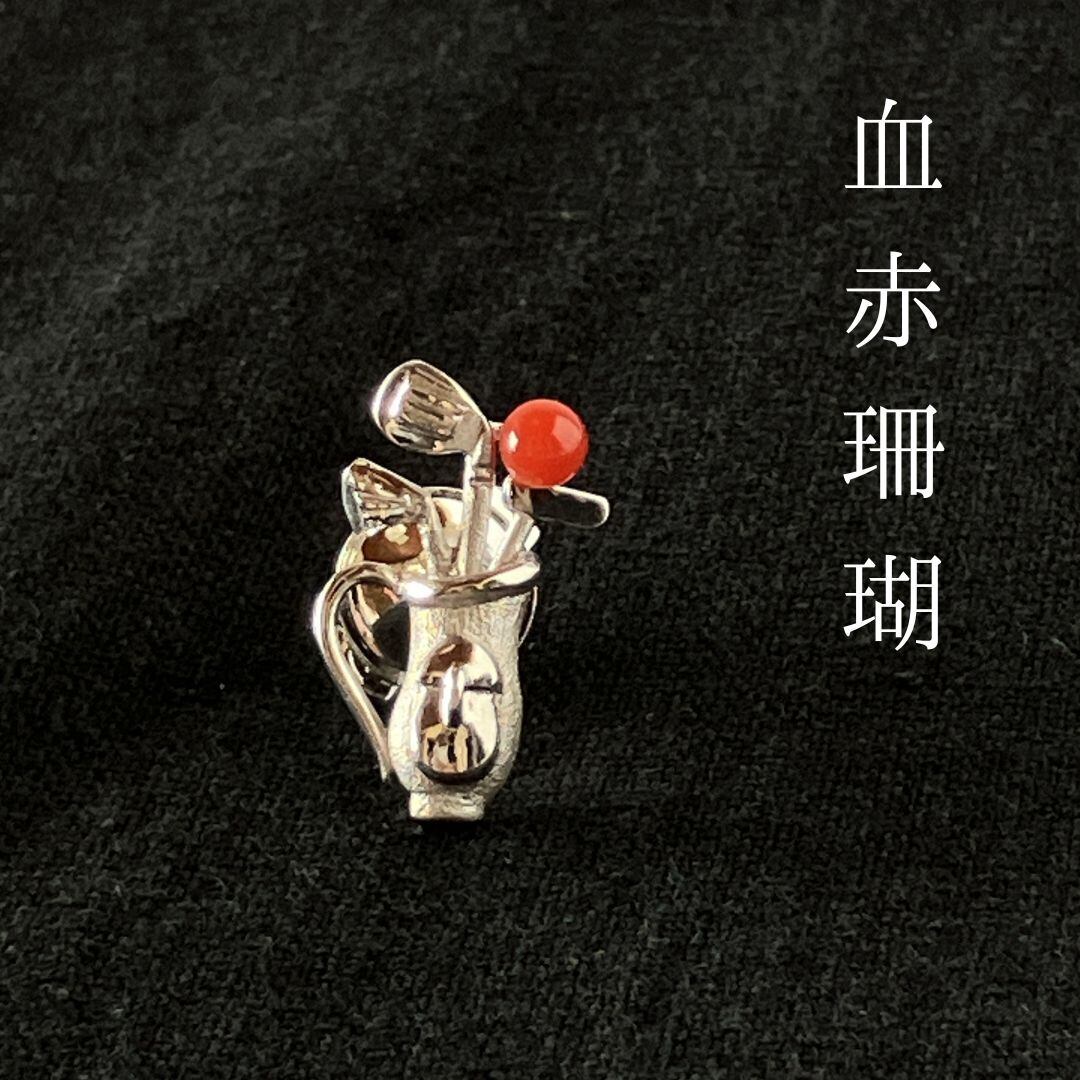 血赤珊瑚 ゴルフシリーズ② ピンタックブローチ SV