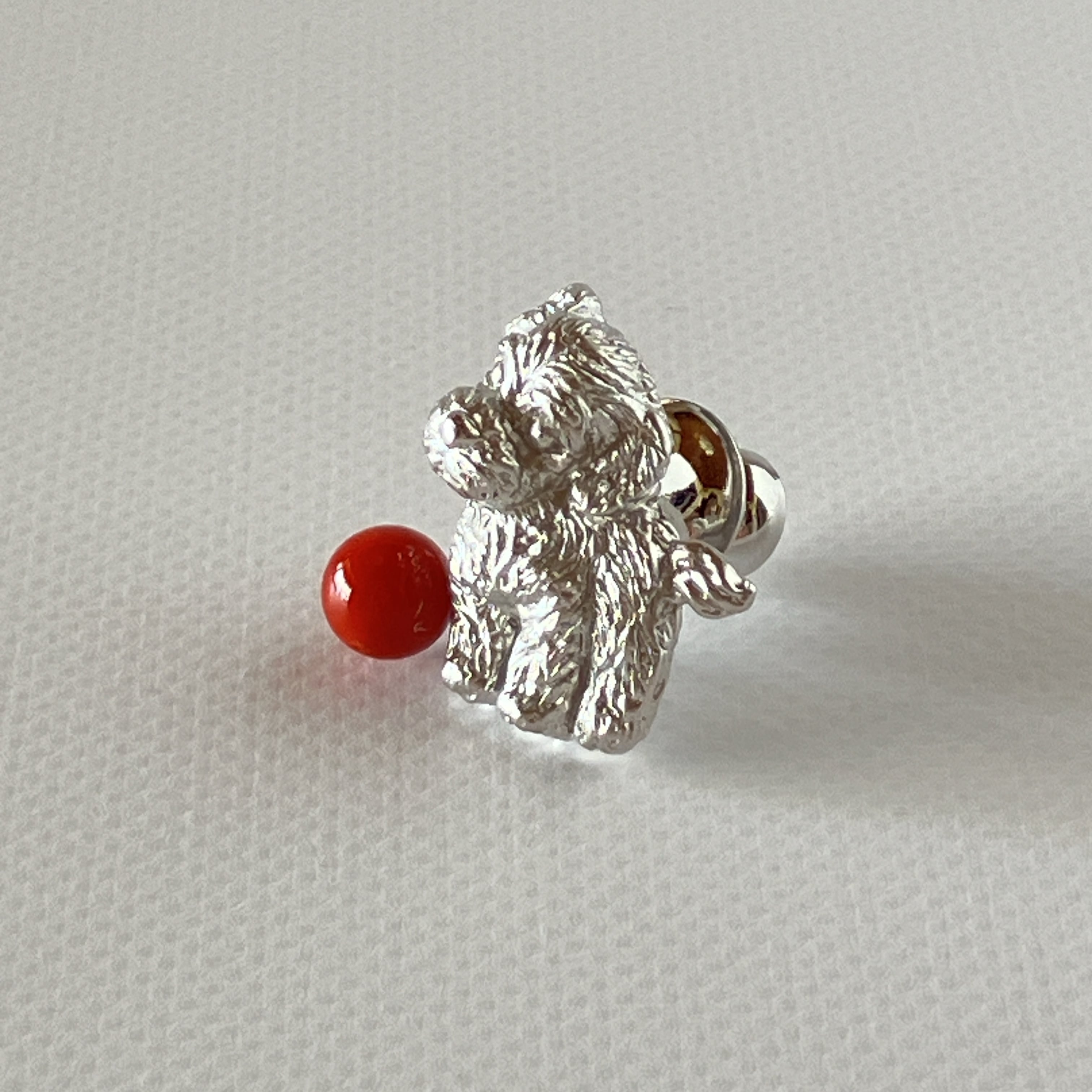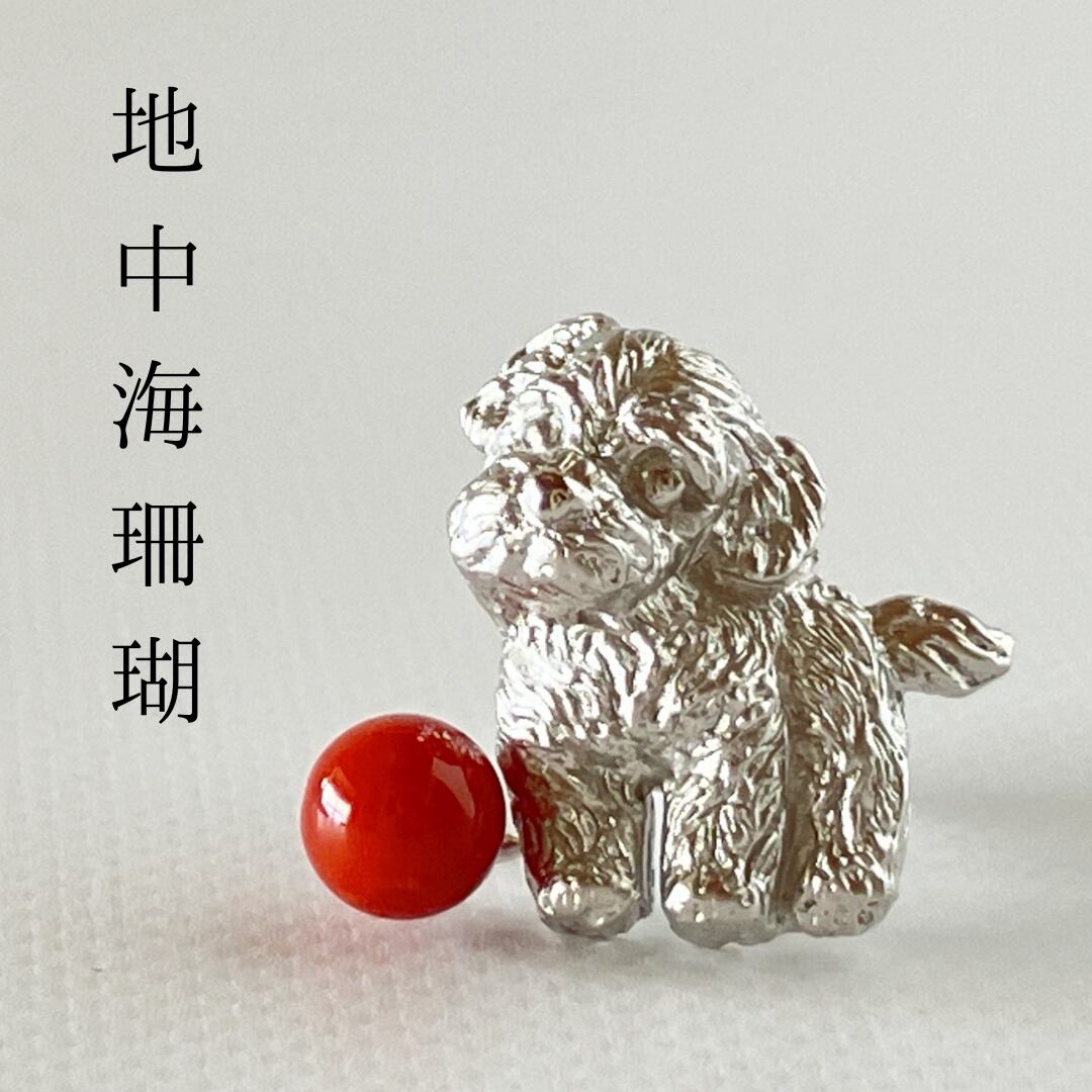 地中海珊瑚 トイプードル ピンタックブローチ SV