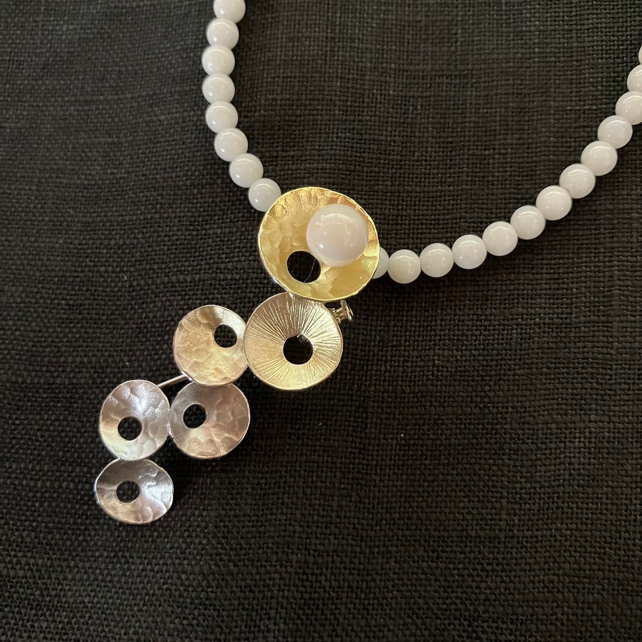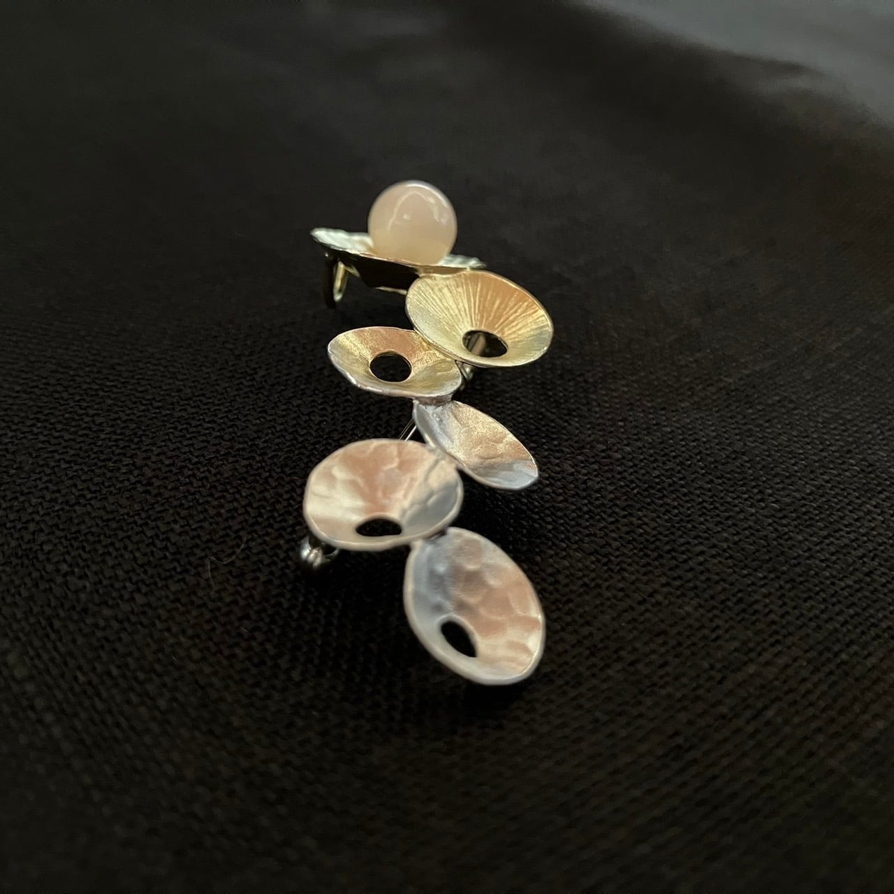 イエローゴールドとシルバーのコントラストが美しい白珊瑚のブローチです。