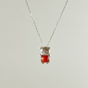 K18WG 赤珊瑚の猫のペンダント D0.01ct pd-28