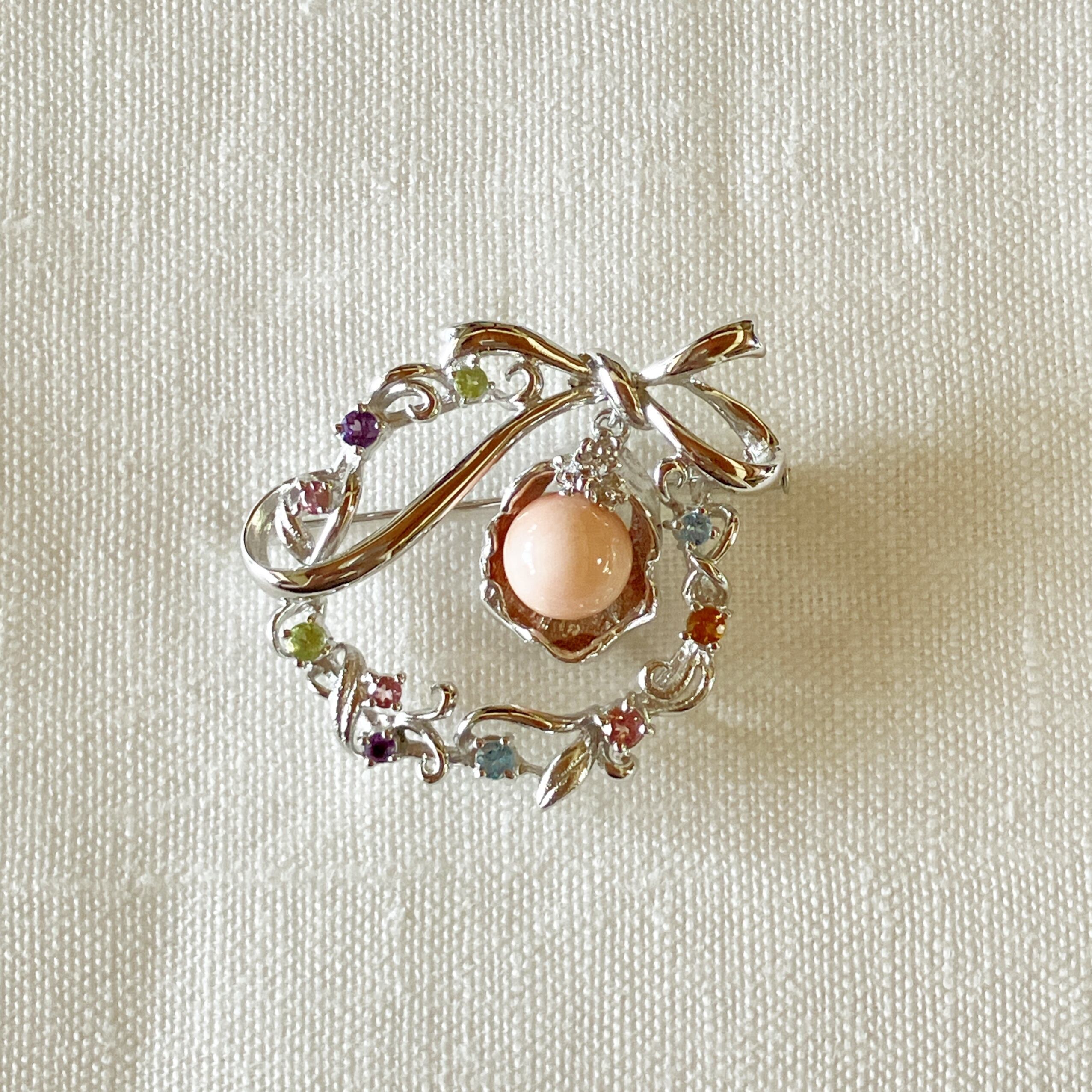 そして、大玉のぴんく珊瑚がゆらゆらと揺れる可愛いブローチです