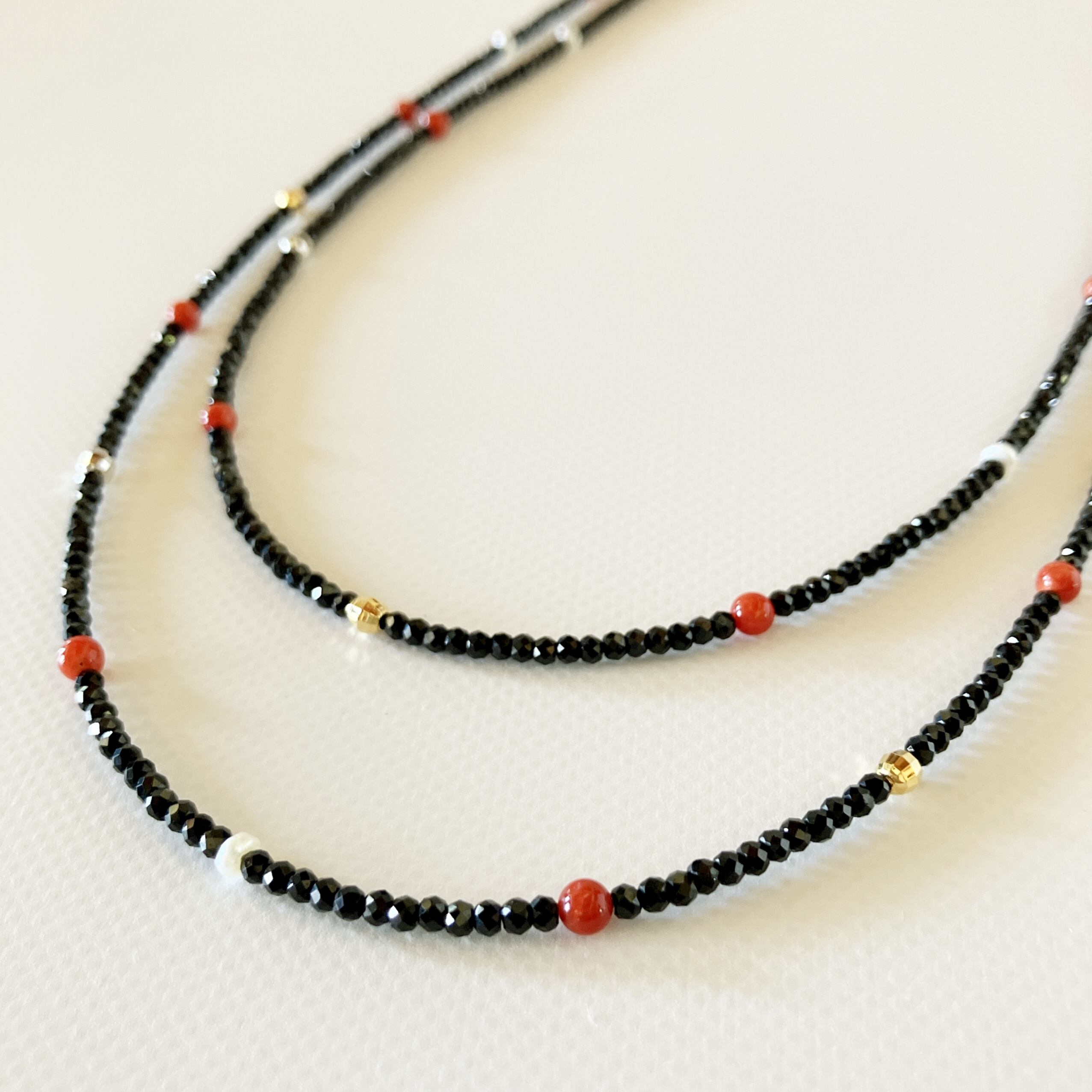 赤珊瑚とプラックスピネル ダブルロングネックレス