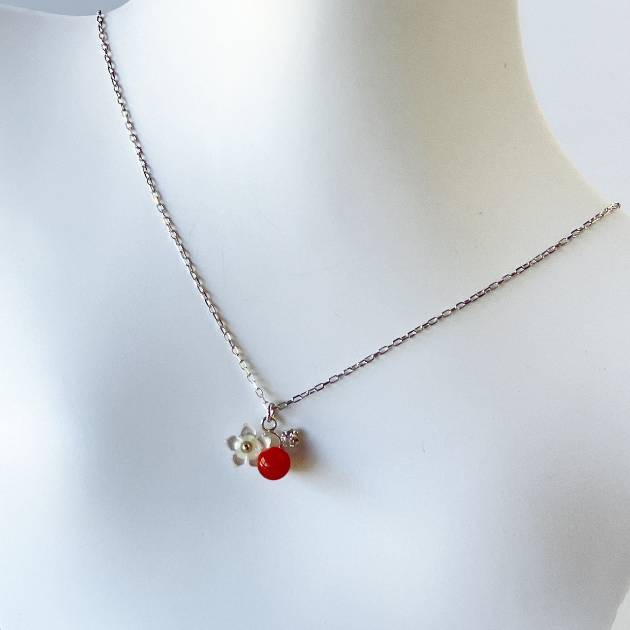 そして鮮やかな赤珊瑚をセッティングした可憐なペンダントです