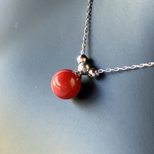 赤珊瑚と煌めくプラチナのボールをセッティングしたペンダントです。