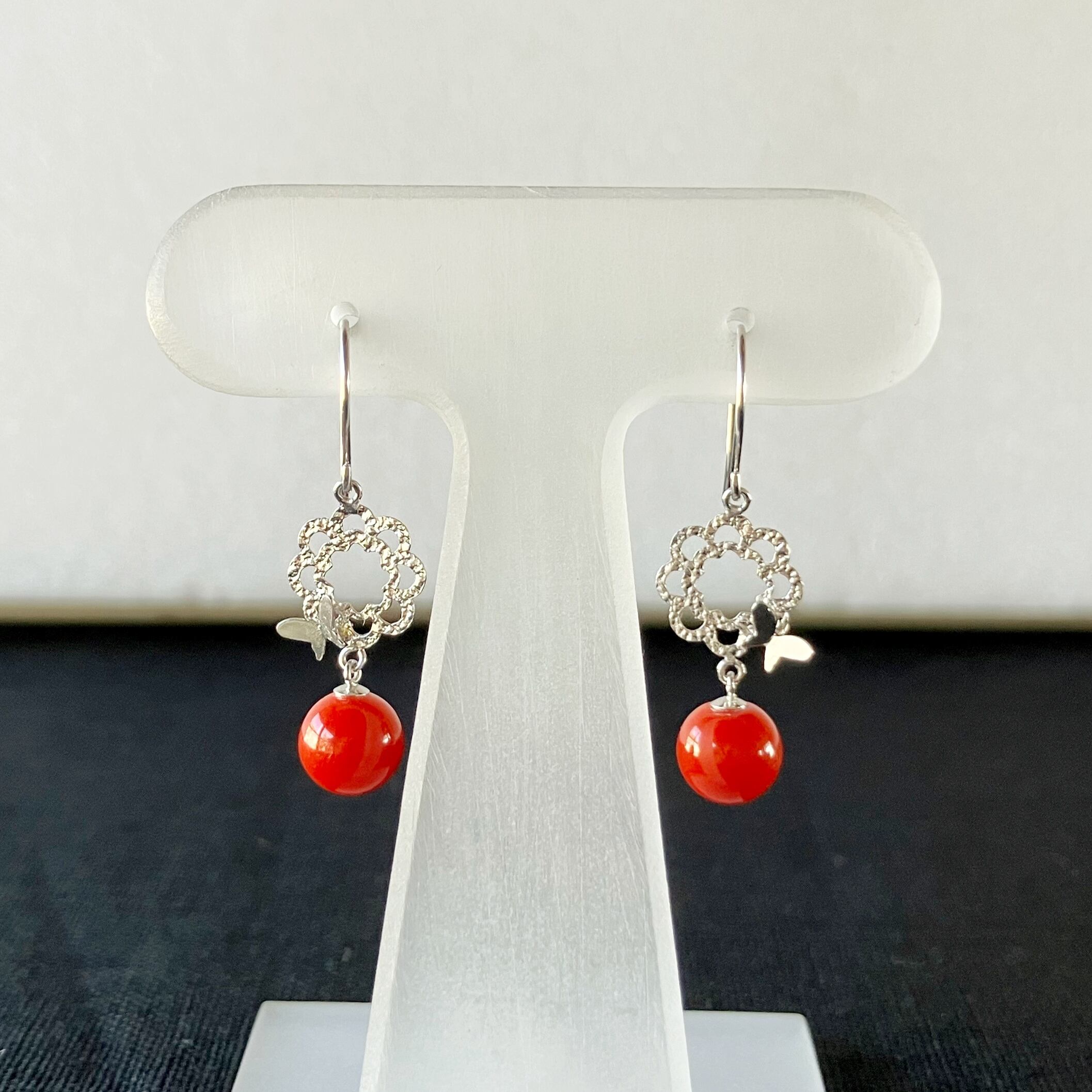 ゆらゆらと揺れる赤珊瑚をセッティングしたピアス