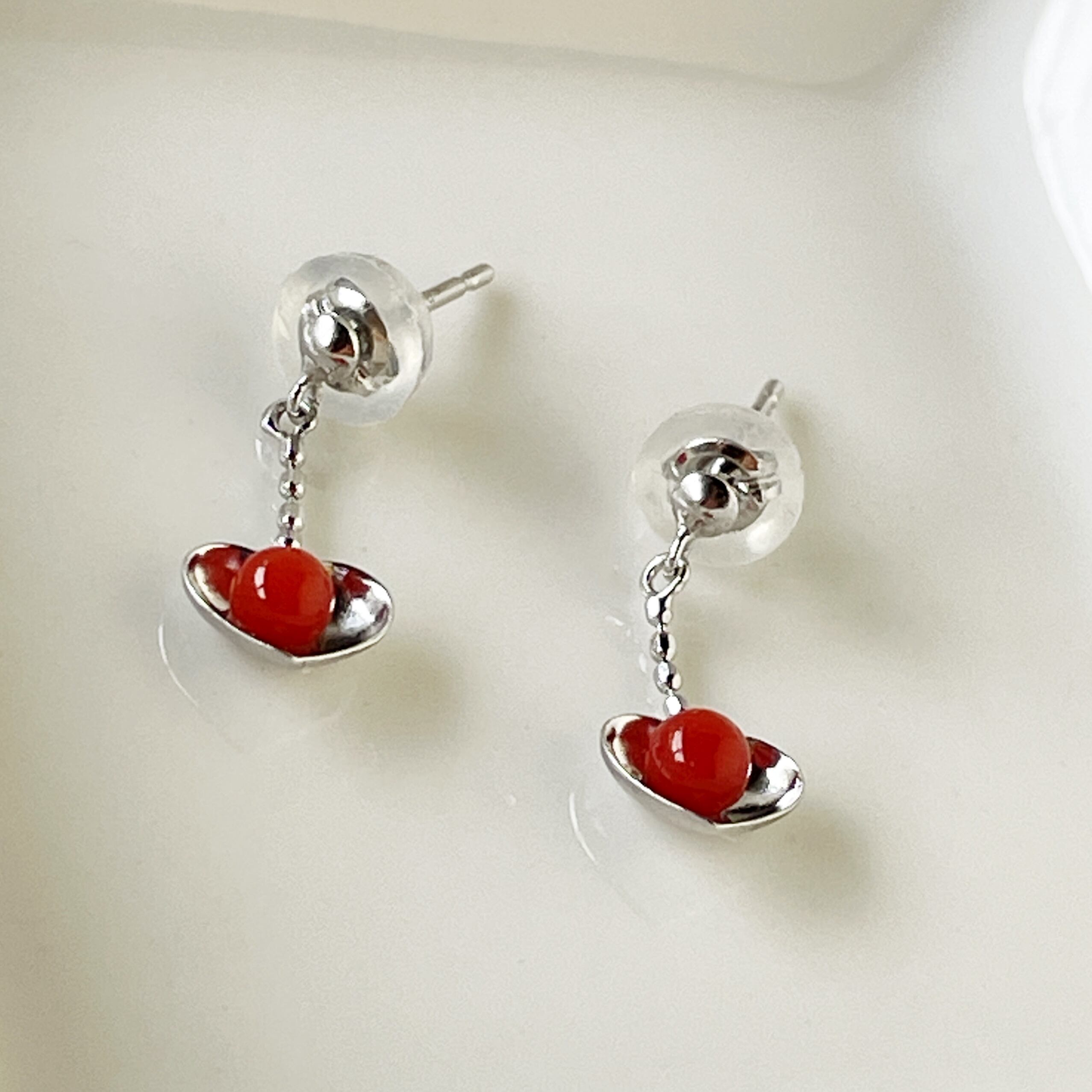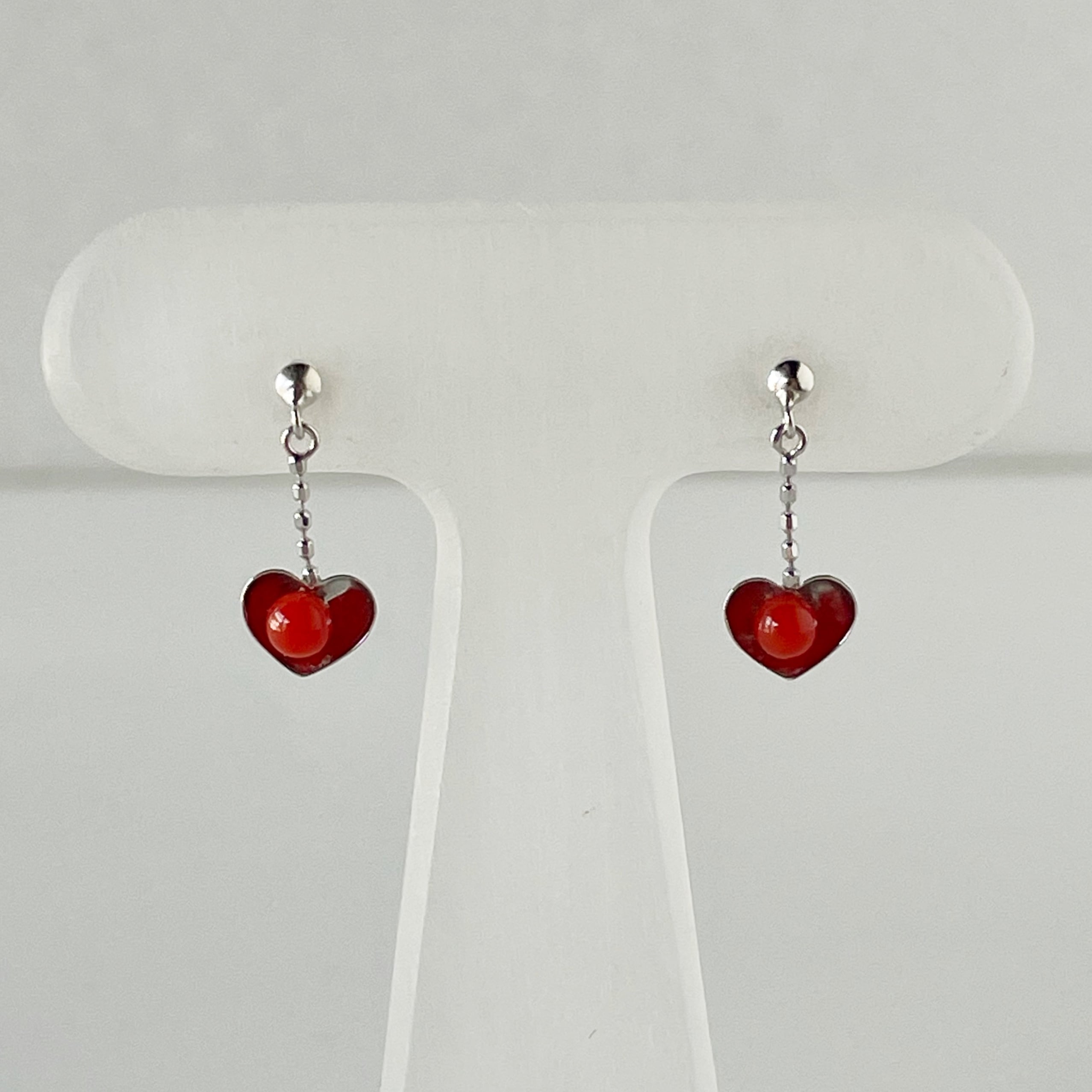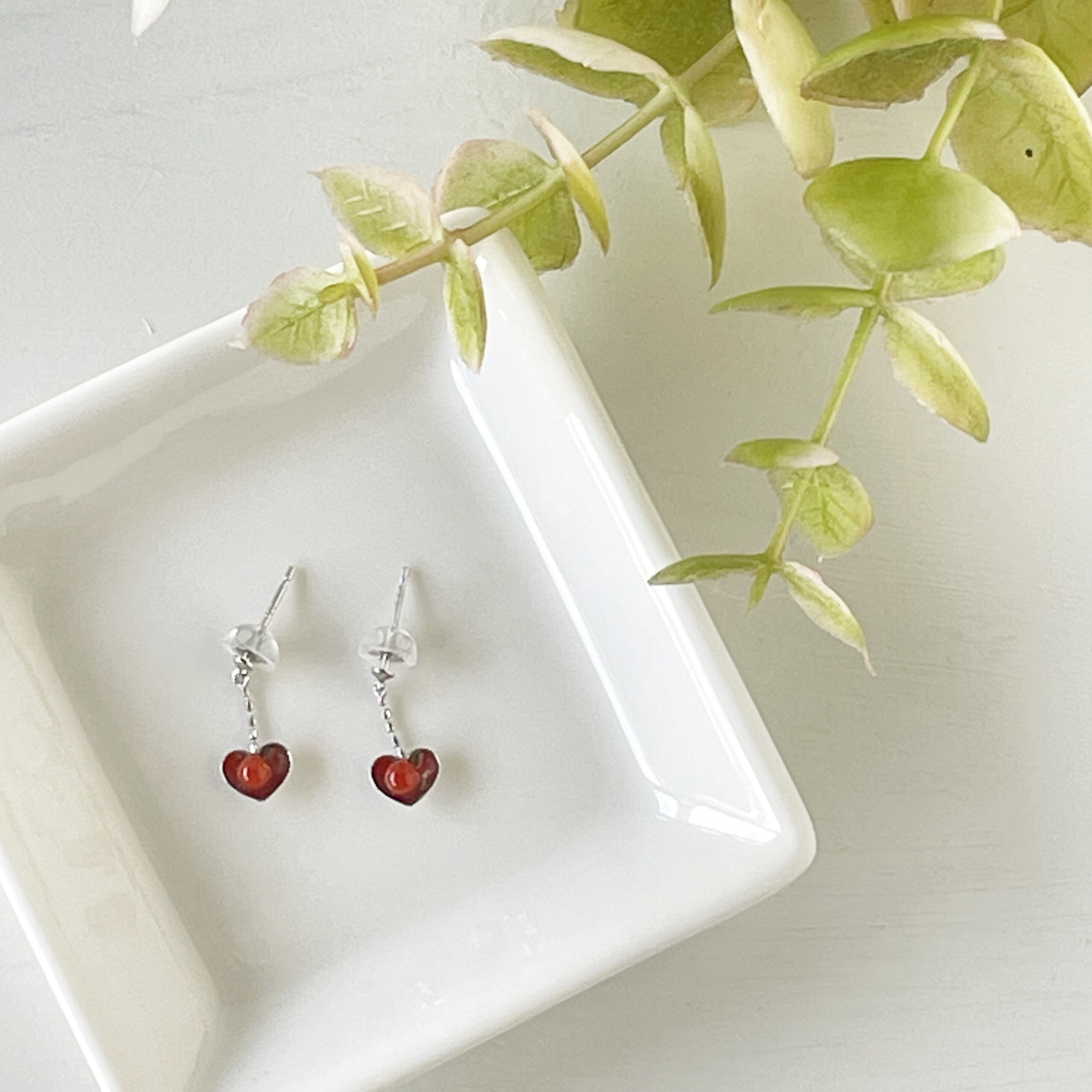 K14WG 赤珊瑚 ゆれるハートのピアス ps-11