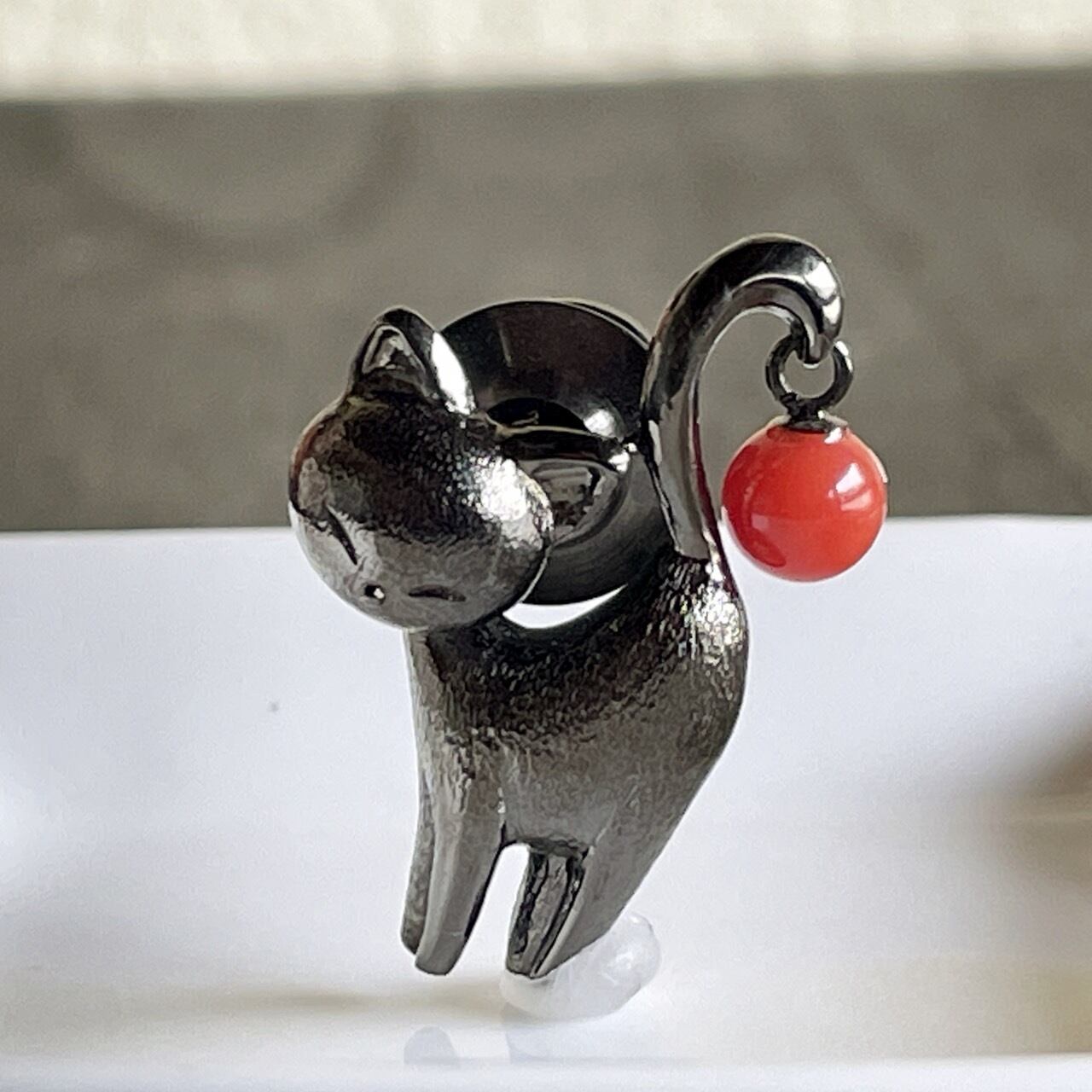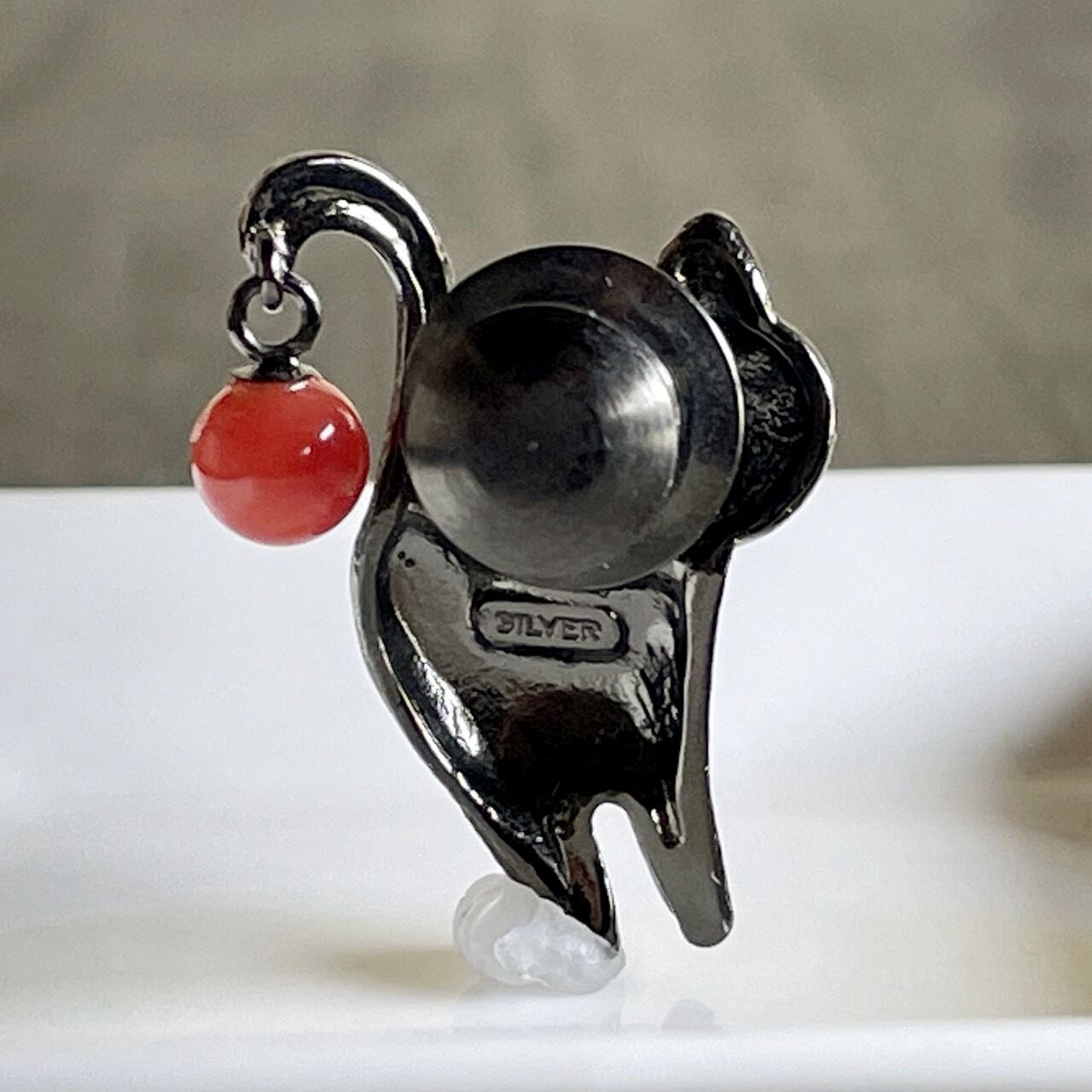 地中海珊瑚 猫ピンタックブローチ SV fb-32